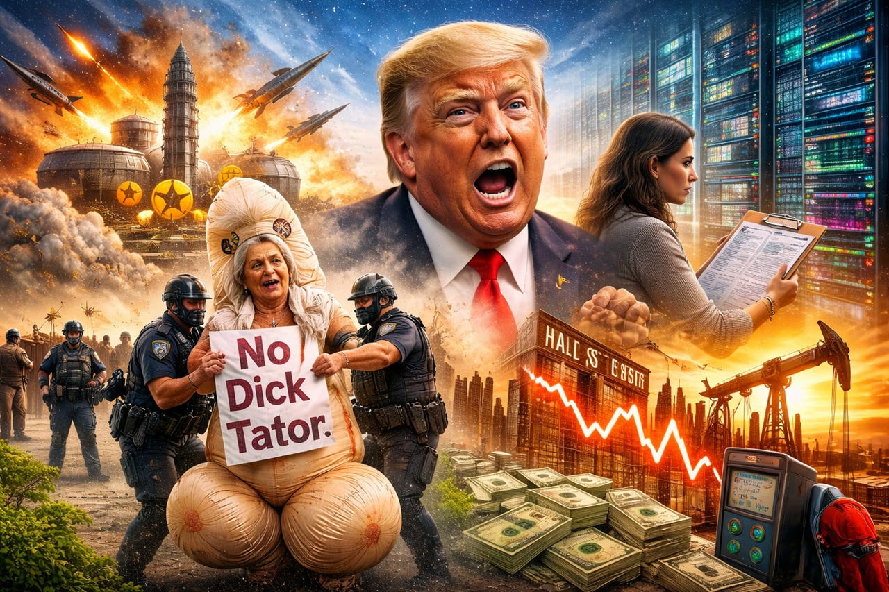 And finally, your Strange Alert. Renea Gamble, a 62-year-old Alabama grandmother, showed up last October to a No Kings rally in Fairhope wearing an inflatable penis costume. Her sign said No Dick Tator. A thousand people showed up in deep-red Baldwin County. A police officer threw her to the ground and arrested her. Videos went viral. Stephen Colbert covered it. A local radio station named the costume Alabamian of the Year. Everyone figured the charges would quietly disappear. They didn’t. The city attorney piled on more charges, adding disturbing the peace and giving a false name to police. For the record, she told the arresting cop her name was Antifa. Renea Gamble, you’re a hero. And Fairhope, you just turned a Halloween costume into a First Amendment landmark.