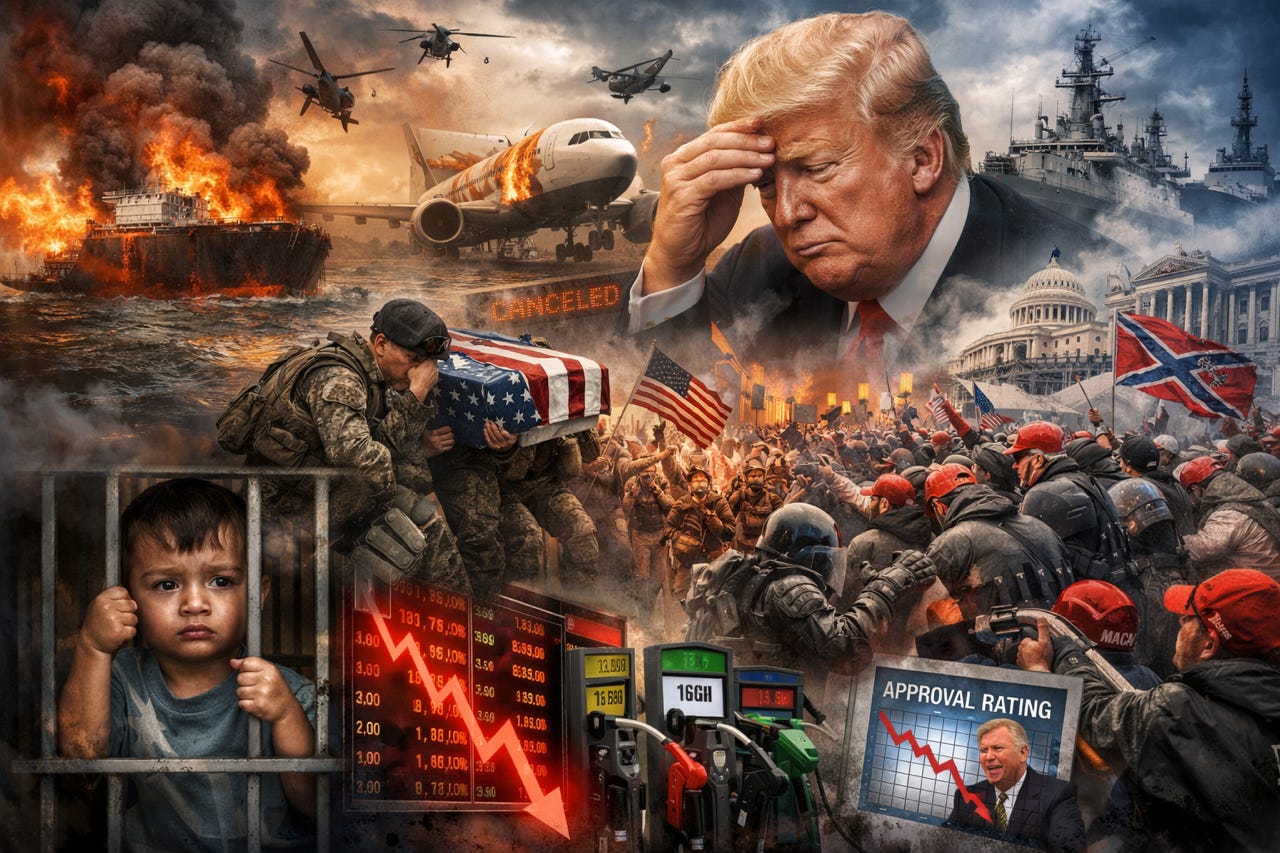 Nate Silver says Trump now has profound problems. For the first time in his second term, Trump’s approval rating has dropped below 40 percent, hitting 39.7 in Silver’s tracker. His net approval is minus 17.4, a new low. One University of Massachusetts poll puts him at just 33 percent. Support for the Iran war is underwater too. Gas is over four dollars a gallon. Markets are down. Eight million people just marched against him. His numbers are dragging the whole Republican Party into that trench with him. With midterms coming in November, Republicans who’ve covered for Trump should be getting nervous. History is rarely kind to those who enable disaster and look the other way.